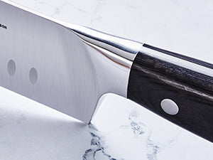 The meticulously constructed, triple-riveted Pakkawood handle has gone through special treatment, making the knife impervious to heat, cold, and moisture.
