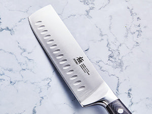 Painstakingly manufactured with high-carbon, cryogenically treated steel, the 7" traditional Japanese Nakiri knife is the ultimate vegetable knife. No matter how you prefer to use the nakiri vegetable knife—slicing, chopping, mincing, you name it—the nakiri knife gets the job done flawlessly and effortlessly. The ergonomic, triple-riveted, pakkawood handle ensures maximum comfort while delivering incredible durability.