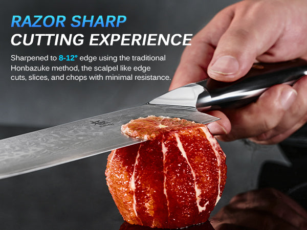 FULL-TANG CONSTRUCTION: The 66 layer Damascus VG10 stainless steel blade extends to the entire length of the handle, withstanding punishing daily use without sacrificing precision and control.