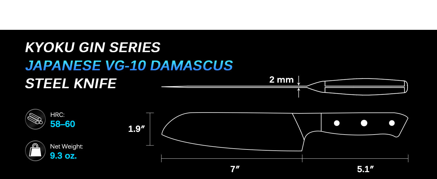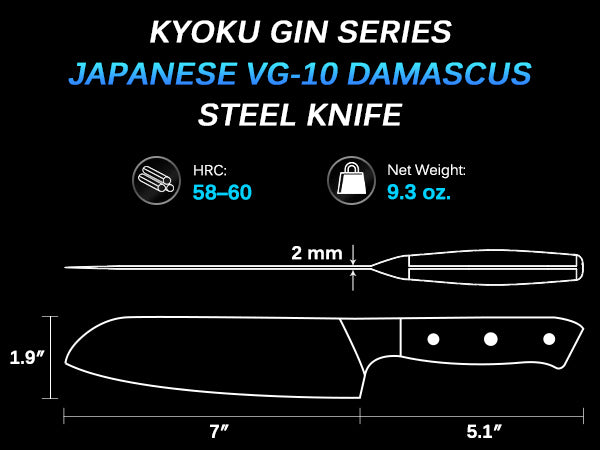 Kyoku Shogun Gin 7" Santoku Knife - Precision Redefined