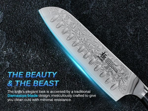 7" Santoku Knife VG10 Damascus Steel with Silver-ion Coating | Gin Series