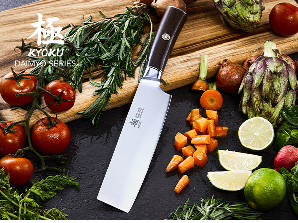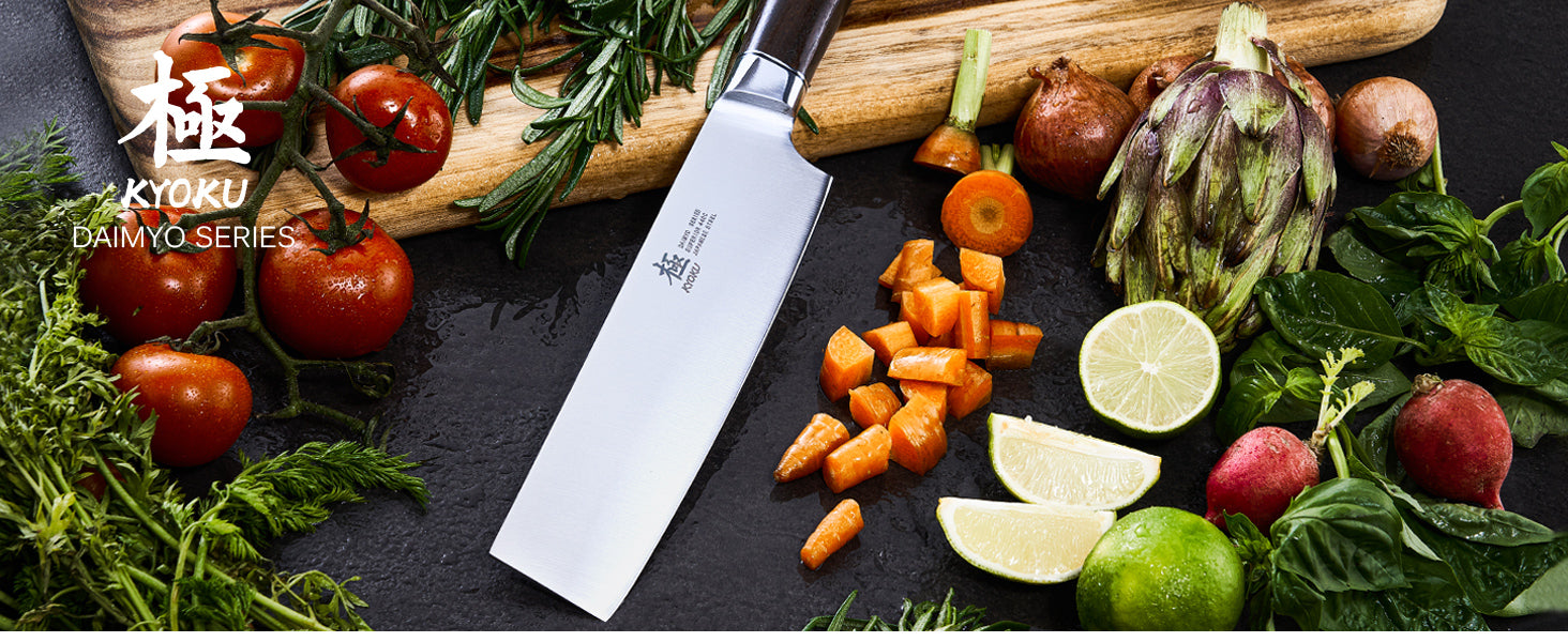 - This vegetable knife is part of Kyoku's premier Daimyo series, manufactured with modern technology and traditional care and craftsmanship; its Japanese 440C stainless steel has been vacuum heat treated and paired with a perfectly balanced rosewood handle to offer superior precision and control to home chefs and culinary professionals alike