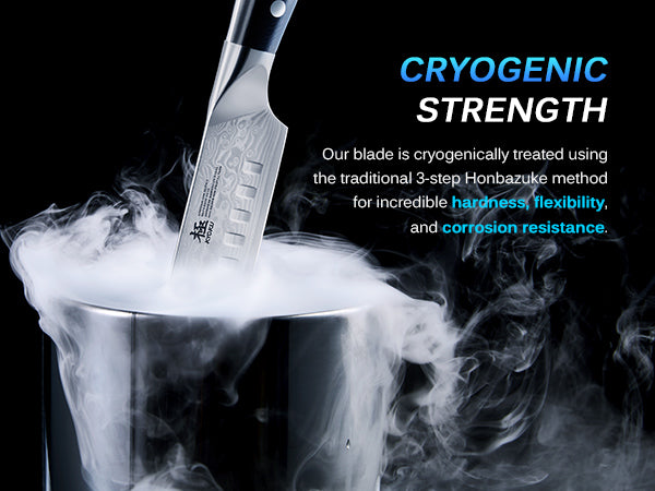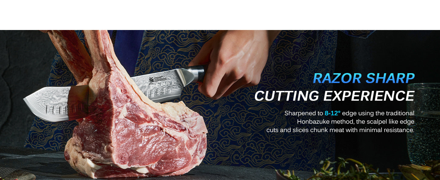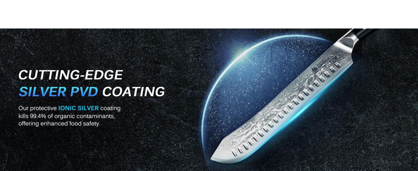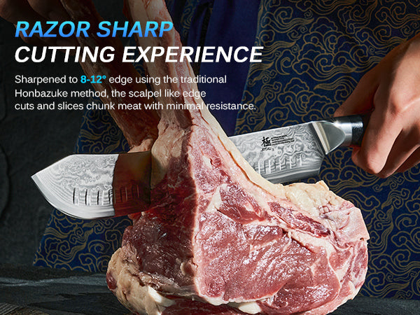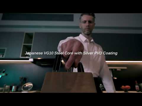 This butcher knife is a perfect fusion of tradition and technology, featuring cryogenically treated Japanese VG-10 steel and an innovative ionic silver coating for unrivaled hygienic performance.