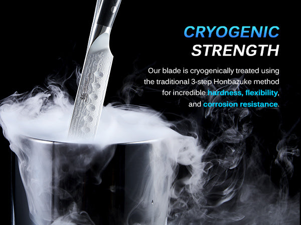 This butcher knife is a perfect fusion of tradition and technology, featuring cryogenically treated Japanese VG-10 steel and an innovative ionic silver coating for unrivaled hygienic performance.