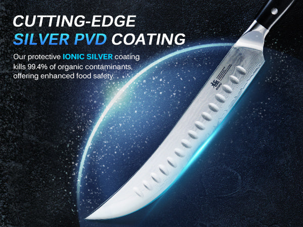 • Innovative Protection: Our blade boasts an ionic silver PVD coating to prevent growth of unwanted organic contaminants for extra culinary safety. The provided sheath and case allow you to preserve your knife with care.