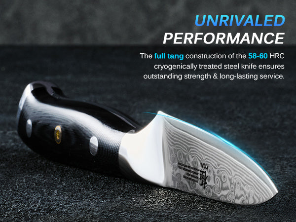 Manufactured with ultra-premium 67-layered stainless Damascus steel at HRC 58-60 hardness. The cobalt added steel outperforms AUS-10 steel in durability and is easier to sharpen, since cobalt enhances the other alloying elements.