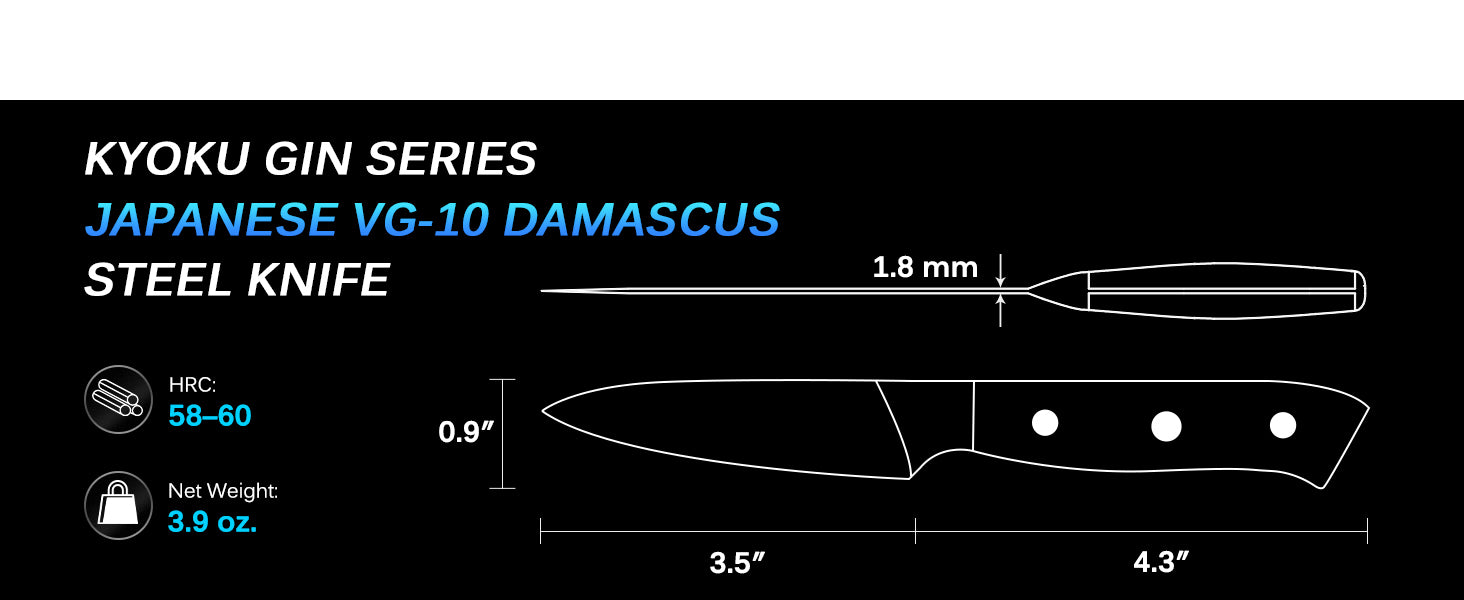 3.5" Paring Knife VG10 Damascus Steel Silver-ion Coating | Gin Series