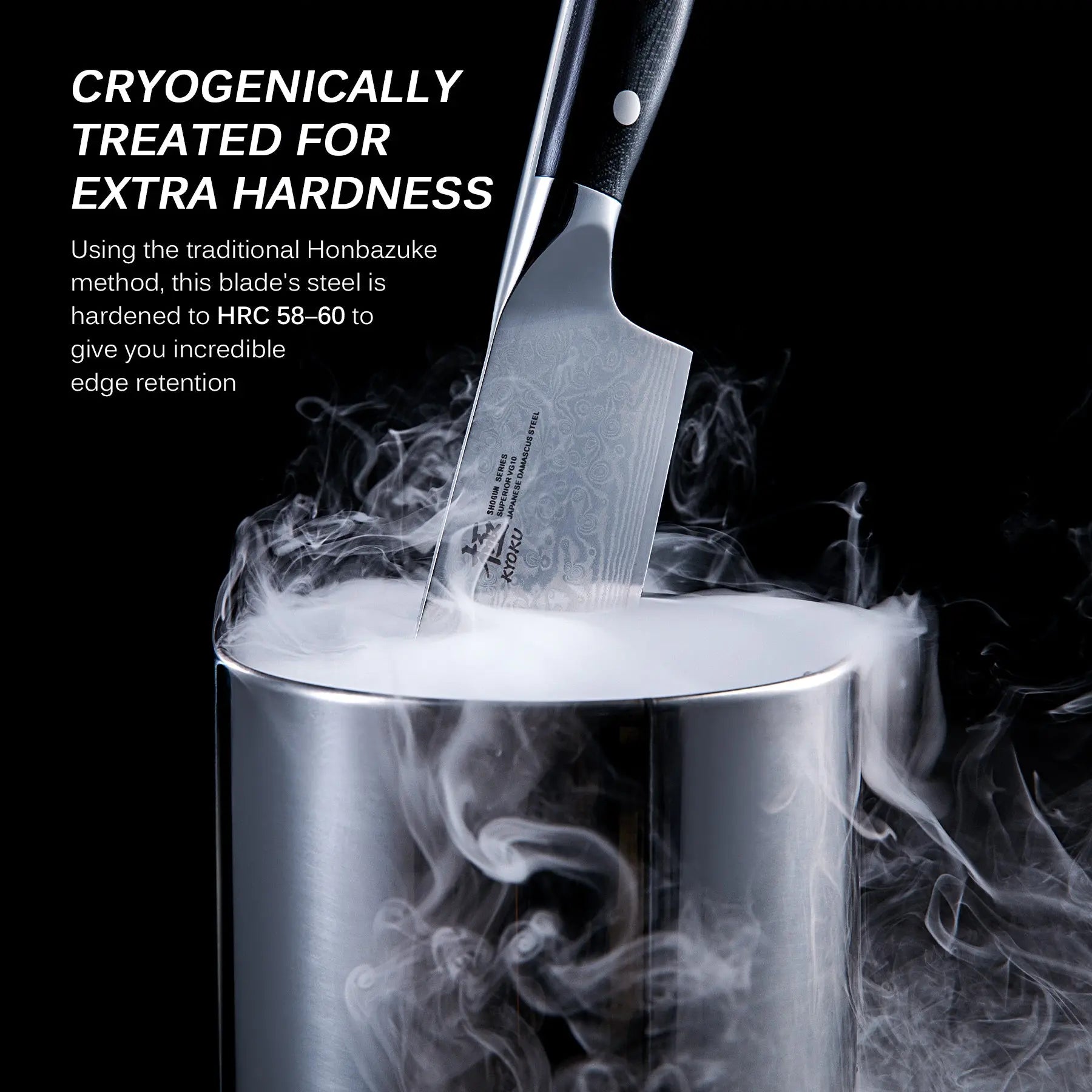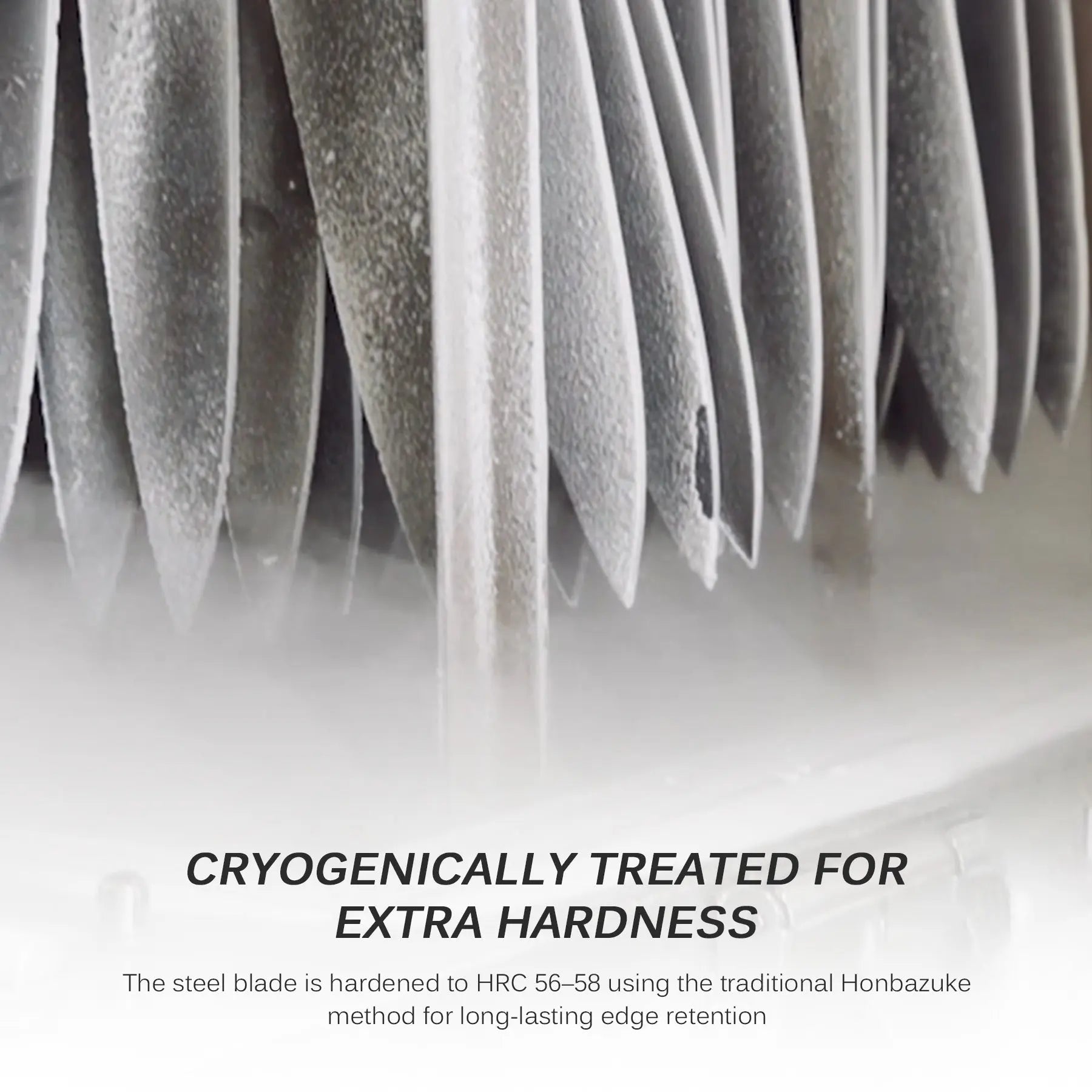 Our Samurai Knife series is made from high-carbon Japanese steel and is nitrogen-cooled for maximum strength and durability.