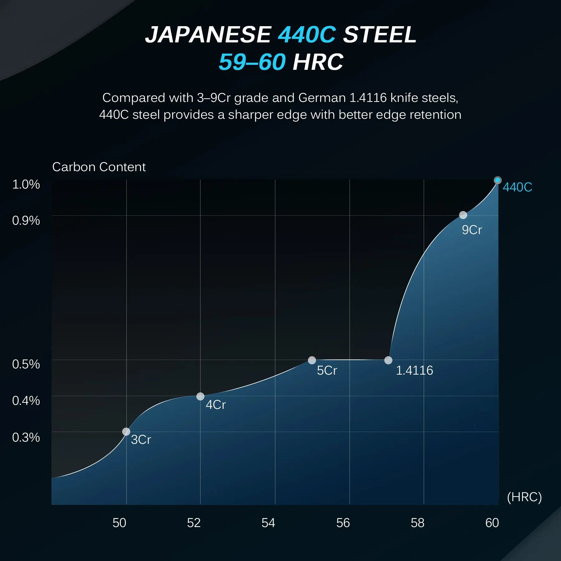 - Material: Japanese 440C Stainless Steel, Rosewood
