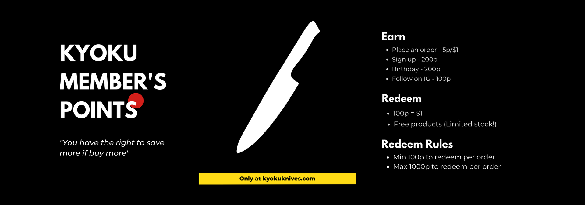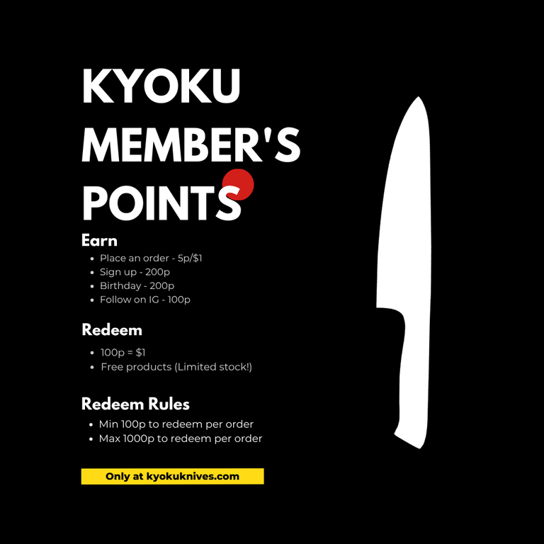 - Earn points with membership - Redeem rewards and get free knives with every order