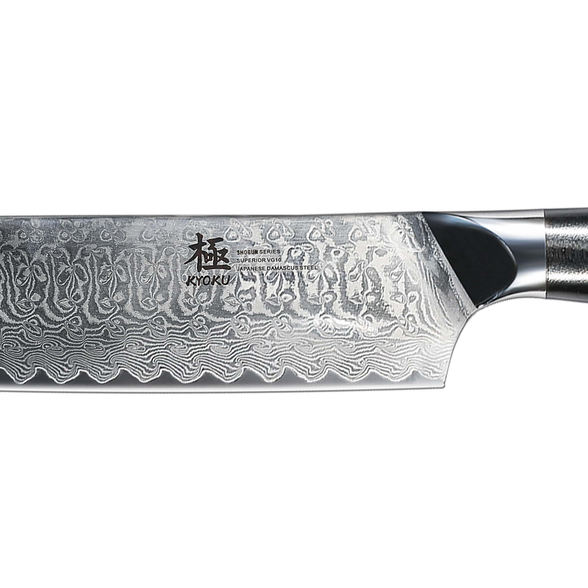 Damascus pattern is crafted through the modern technique of laminating and forge-welding multiple layers of steel, distinguished by its striking wave, rose, or watery light and dark pattern. Each blade in Kyoku's Shogun Series consists of 67 layers of metal, repeatedly folded to resemble a miniature river sculpted into the steel. You can trace each layer and twist of the metal, almost feeling the echoes of centuries of hammering.