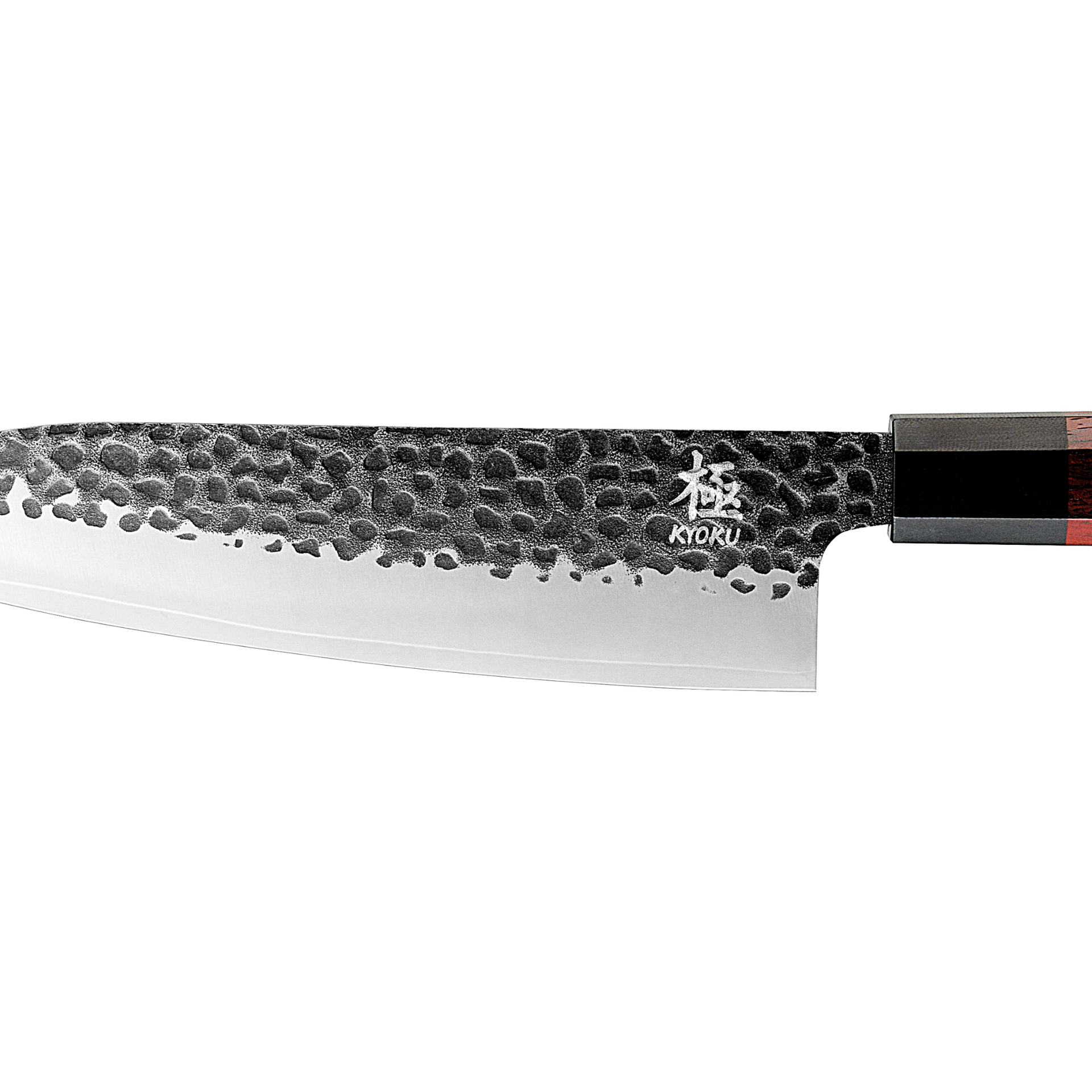 Beyond its captivating artistic appearance, Kyoku’s Damascus steel excels in performance. The combination of soft and hard steels delivers both exceptional toughness (reducing chipping) and a razor-sharp edge. Kyoku further enhances functionality with sandblasting technology, which helps release food from the blade and reduces cutting resistance.